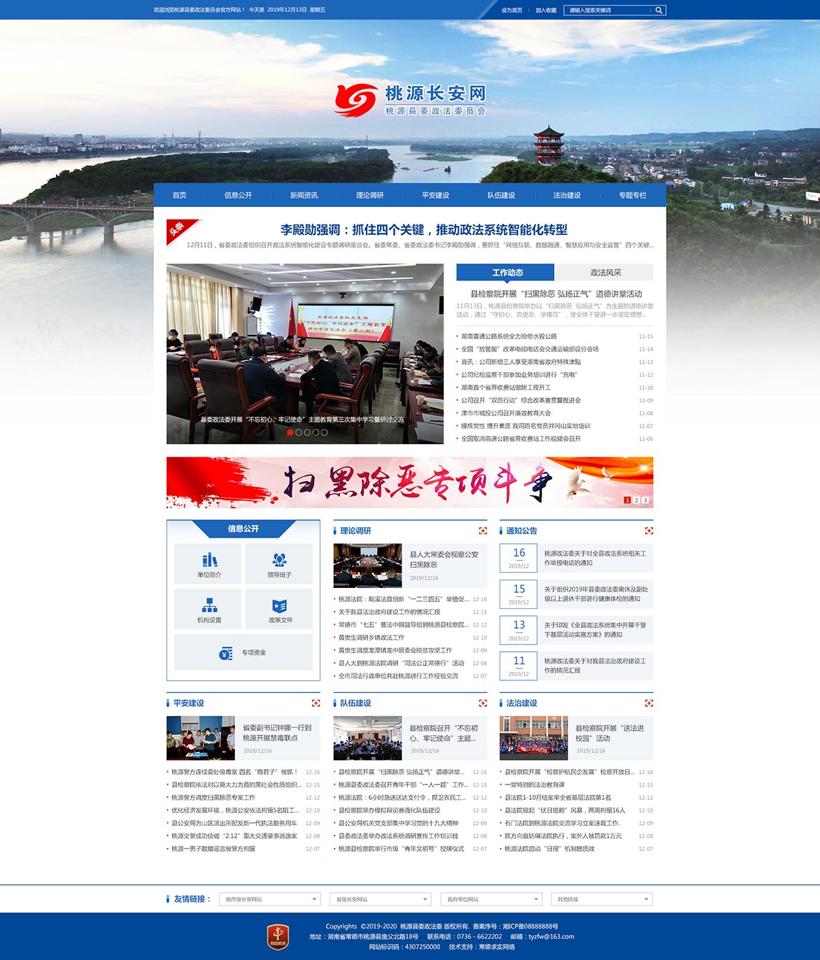 中共桃源縣委政法委員會成立于1982年,下設(shè)辦公室、政工室、執(zhí)法監(jiān)督室三個內(nèi)設(shè)機(jī)構(gòu)。2002年4月,政法委實(shí)施機(jī)構(gòu)改革,政法委與桃源縣社會治安綜合治理委員會辦公室(2011年,全稱變更為桃源縣社會管理綜合治理委員會辦公室,簡稱縣綜治辦)合署辦公。2009年12月,成立桃源縣維護(hù)穩(wěn)定工作辦公室,與縣委政法委、縣綜治辦一個機(jī)構(gòu),三塊牌子。縣委政法委是縣委領(lǐng)導(dǎo)政法工作的職能部門,縣綜治辦、縣穩(wěn)定辦是協(xié)助縣委、縣政府領(lǐng)導(dǎo)全縣社會管理綜合治理工作、維護(hù)穩(wěn)定工作常設(shè)議事機(jī)構(gòu)的辦事機(jī)構(gòu)。